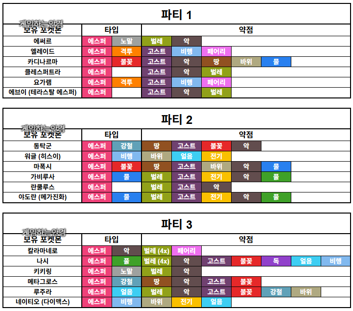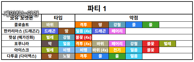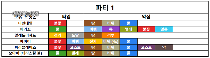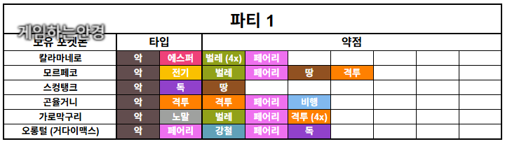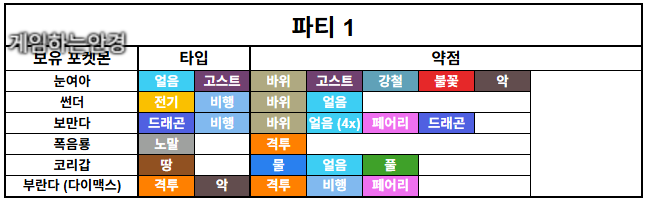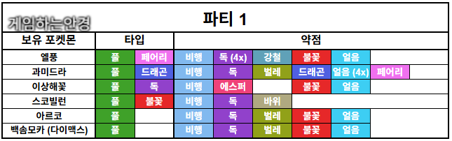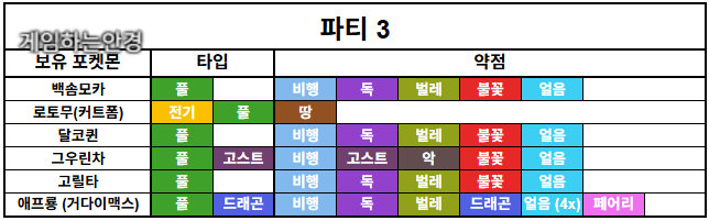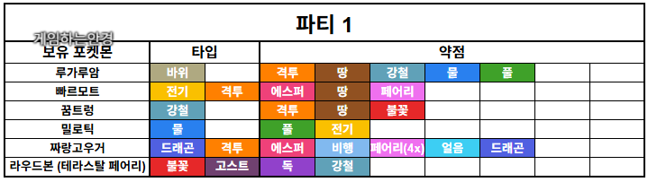 악타입이 많아 페어리 타입이 있다면 수월할 것 같네요.