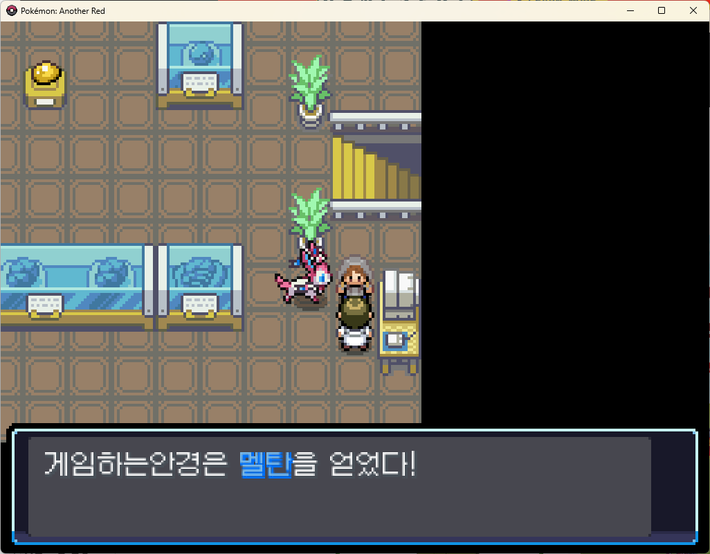 반대편으로 이동하면 연구원에게 멜탄 을 얻을 수 있습니다.아킬