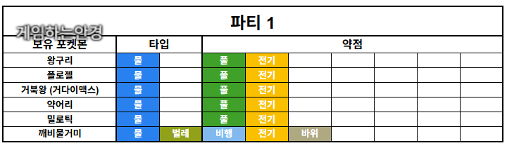 특이사항으로세번째 파티와 배틀하게 되시면 망나뇽이 노말 테라를 사용해 약점이 변경됩니다.