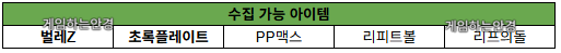 또한, 벌레Z 와 초록플레이트는 꼭 수집하고 넘어가줍시다.
