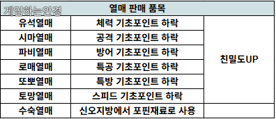 열매들은 친밀도는 증가하지만 각종 노력치포인트는 줄어들게 되는 효과가 있습니다.