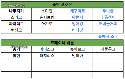 야생포켓몬과 획득할수 있는 아이템은 엑셀로 정리된 가이드를 참고하여 작성하니 틀린부분이 있을수 있습니다.
