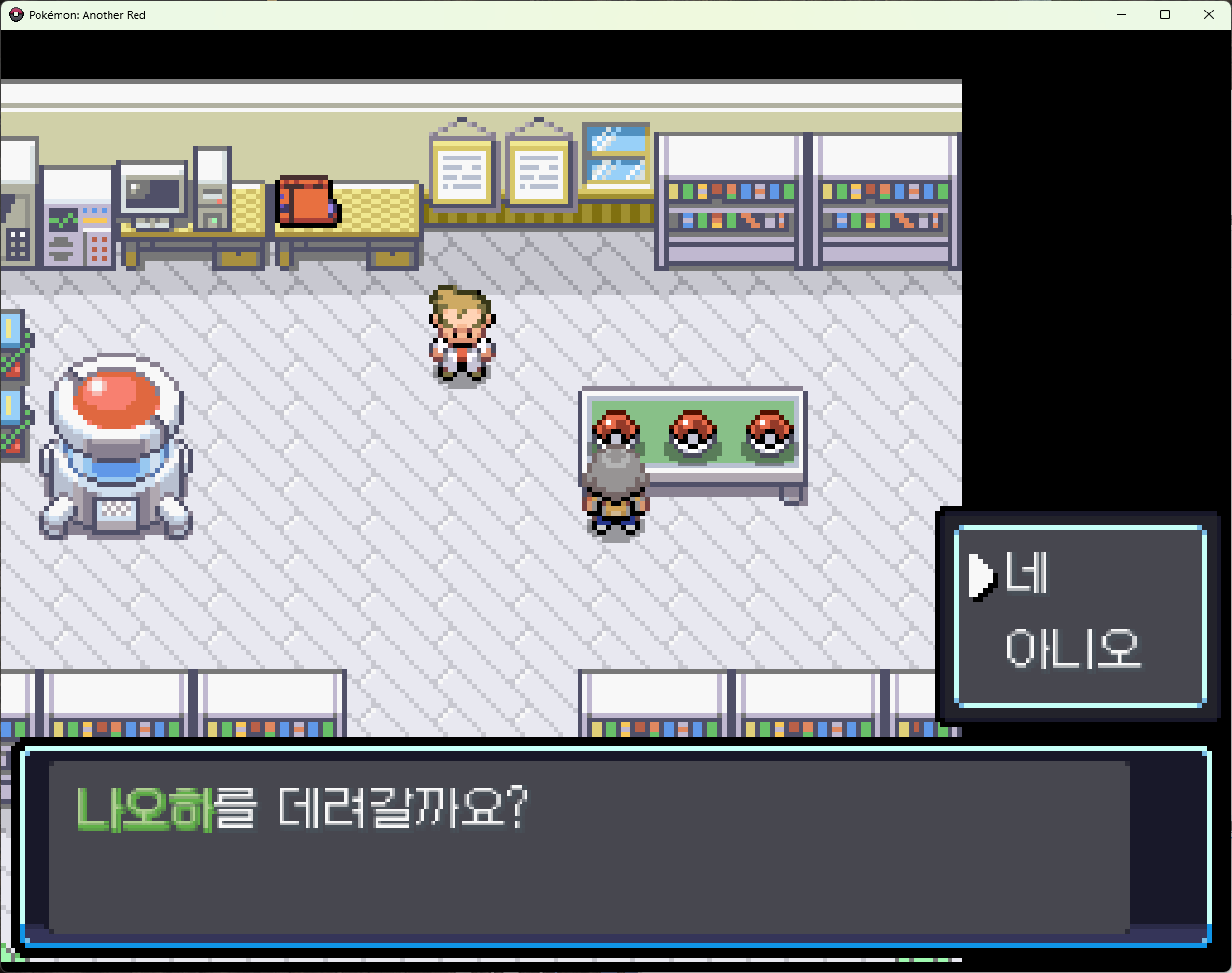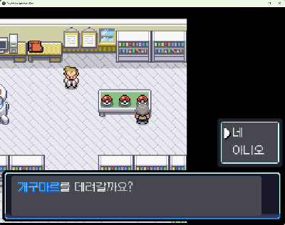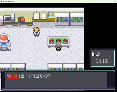 대화를 이어가다보면 오박사의 연구소로 이동되며, 함께 모험을 떠날 포켓몬을 선택하라고 합니다.